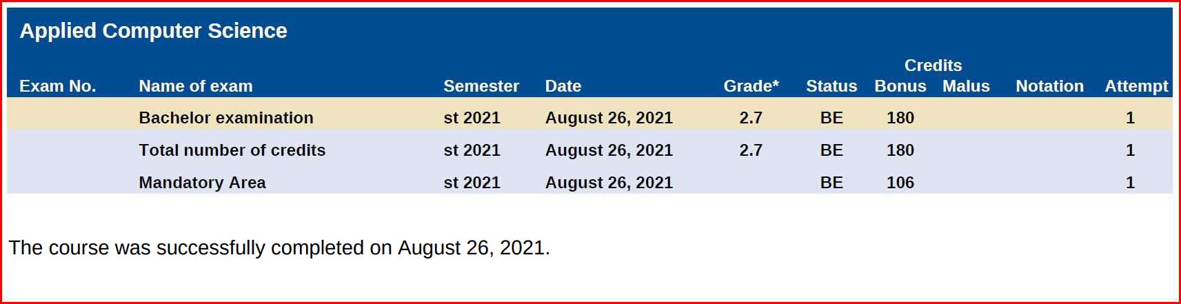 bachelor's degree certificate field of study: bachelor of science (b.sc.) subject area: applied computer science |